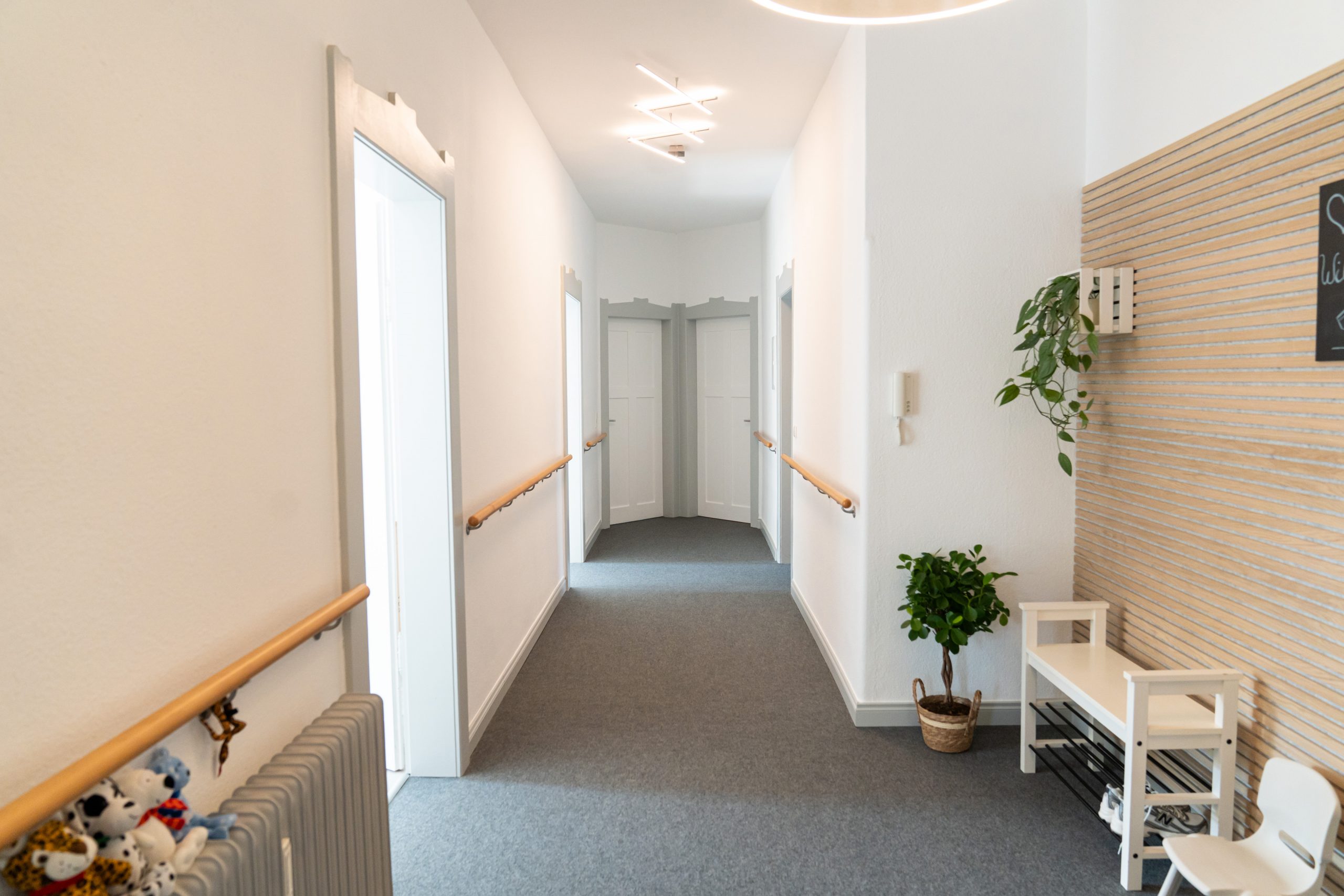 Auch wenn wir unsere Termine so planen, dass kaum Wartezeiten entstehen, kann es gelegentlich zu kurzen Verzögerungen kommen. In unserem gemütlichen Wartebereich lässt sich die Zeit entspannt verbringen – oder Sie nutzen den Spielplatz gegenüber, um mit den Kindern frische Luft zu schnappen.